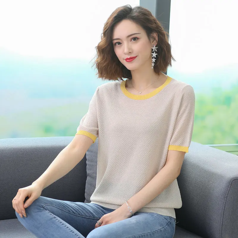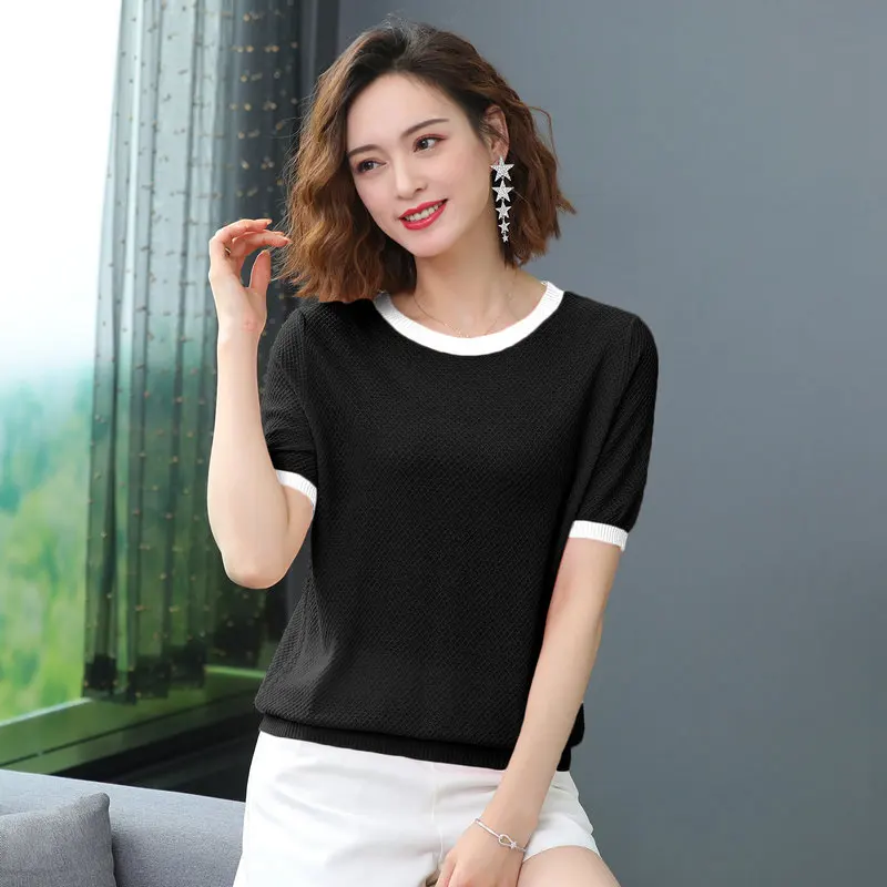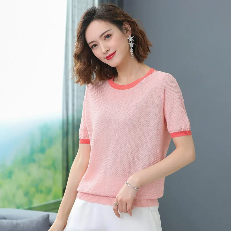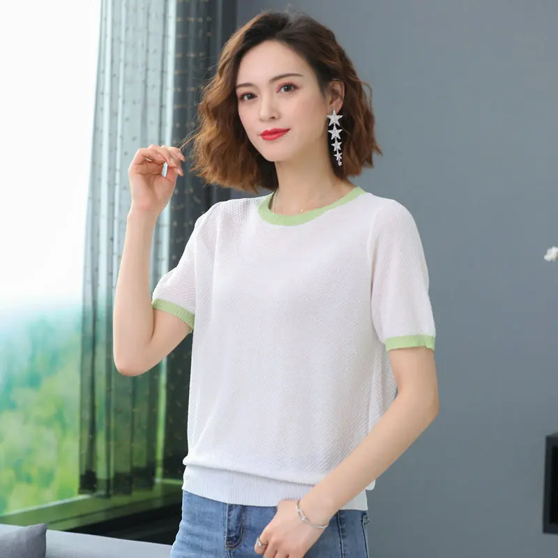 Addition Information of Women Summer Cotton Linen Blouses Green Pink White Black White Short Sleeve Tops Female O-neck Bright Colour Stripe Hem Blouse