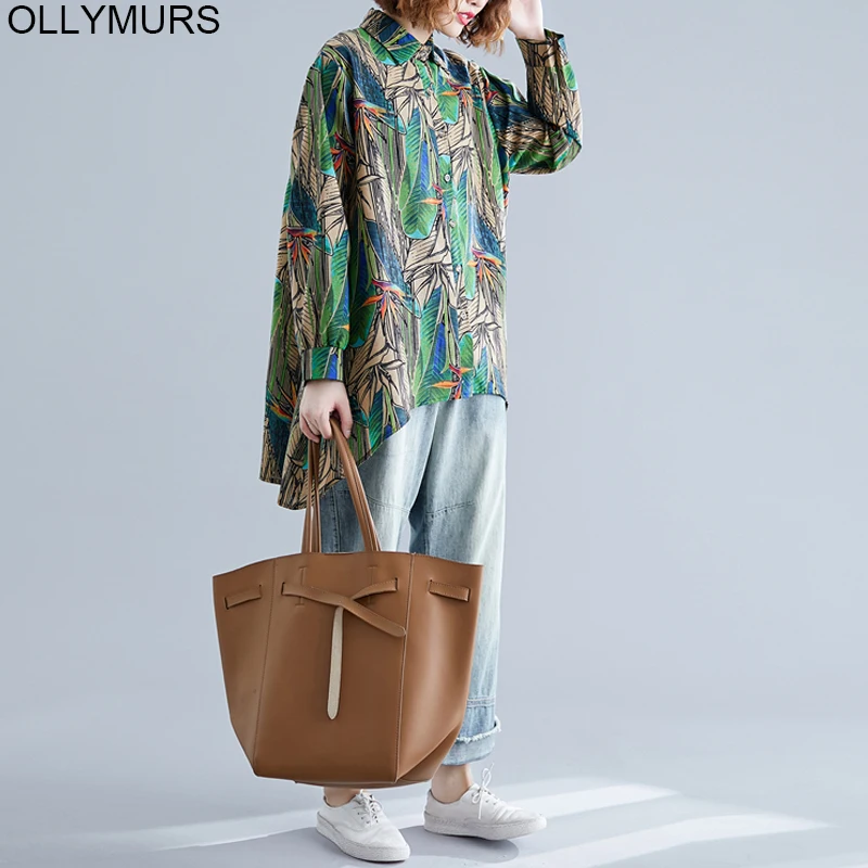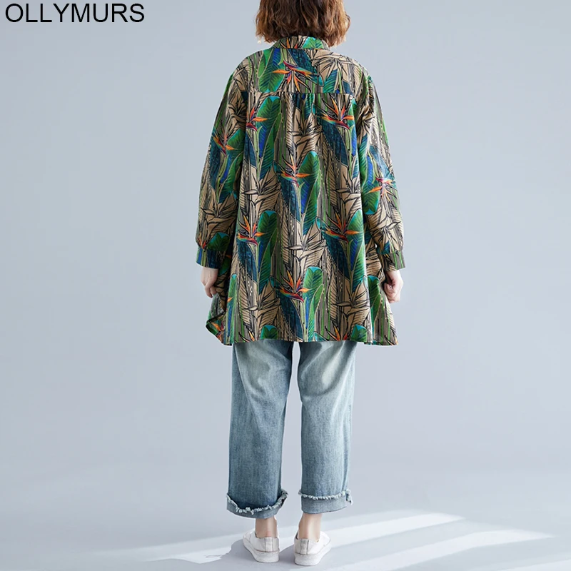 Good Chance of 2020 New Long Cardigan Blouse Tops Vintage Art Ethnic Print Loose Women Shirt Long Sleeve Cotton leaf Linen Plus Size 3XL