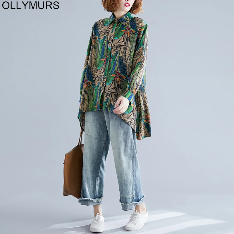 2020 Spring Autumn Women Blouses Button Befree Boho Ruffles Long Full Sleeve Casual Chiffon Big Large Pluse Sizes Tops Shirts