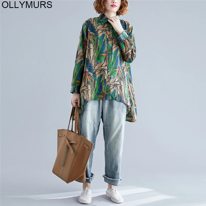 Price Description of 2020 New Long Cardigan Blouse Tops Vintage Art Ethnic Print Loose Women Shirt Long Sleeve Cotton leaf Linen Plus Size 3XL