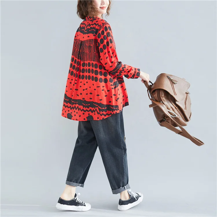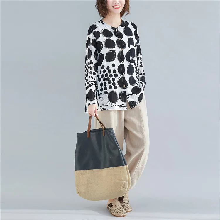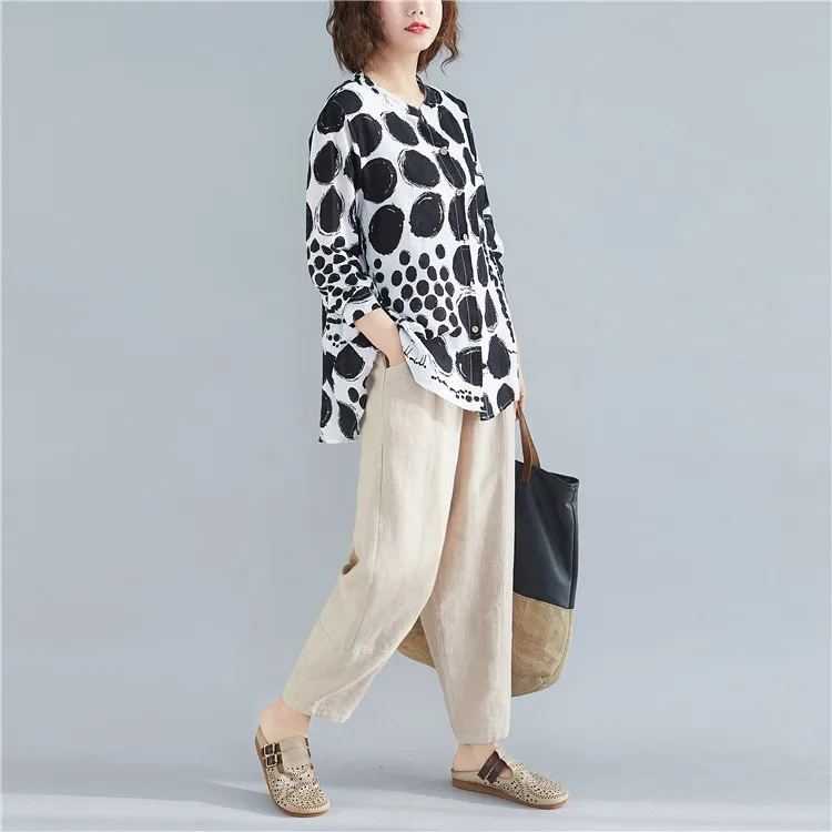Offer Description for 2020 Spring Beach Boho Vintage Casual Loose Ladies Shirts Womens Tops and Blouses Plus Size Polka Dot Cotton Linen Shirt Blouse