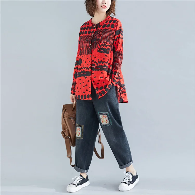 Addition Information of 2020 Spring Beach Boho Vintage Casual Loose Ladies Shirts Womens Tops and Blouses Plus Size Polka Dot Cotton Linen Shirt Blouse
