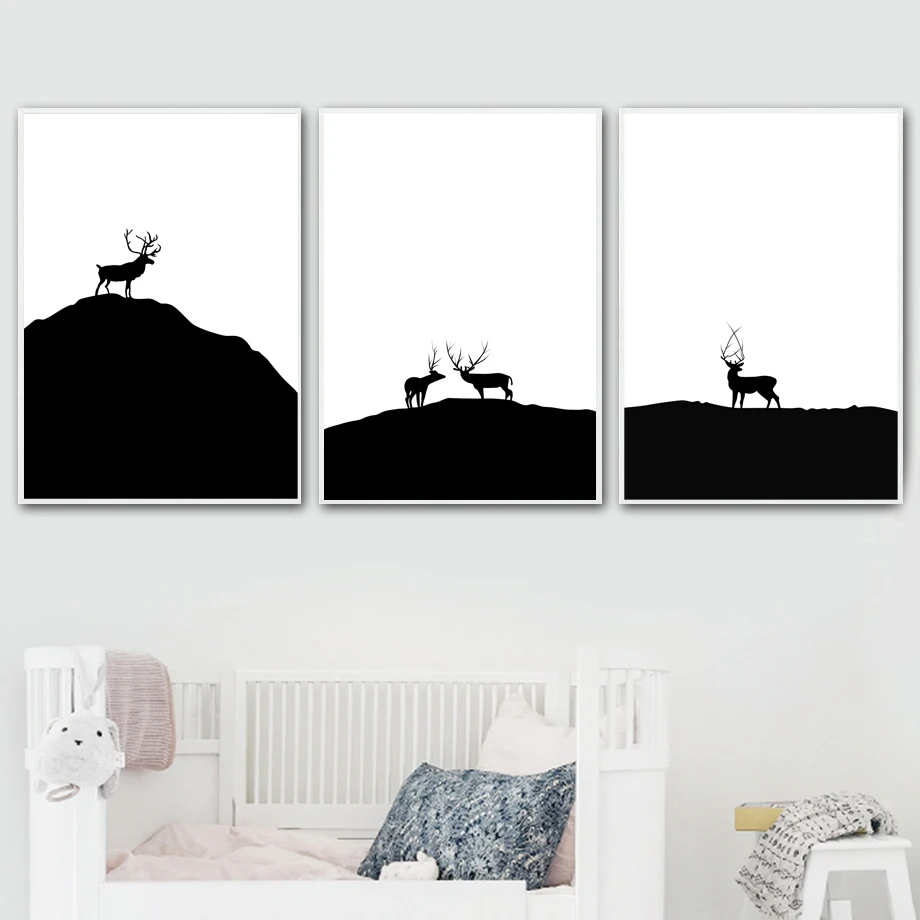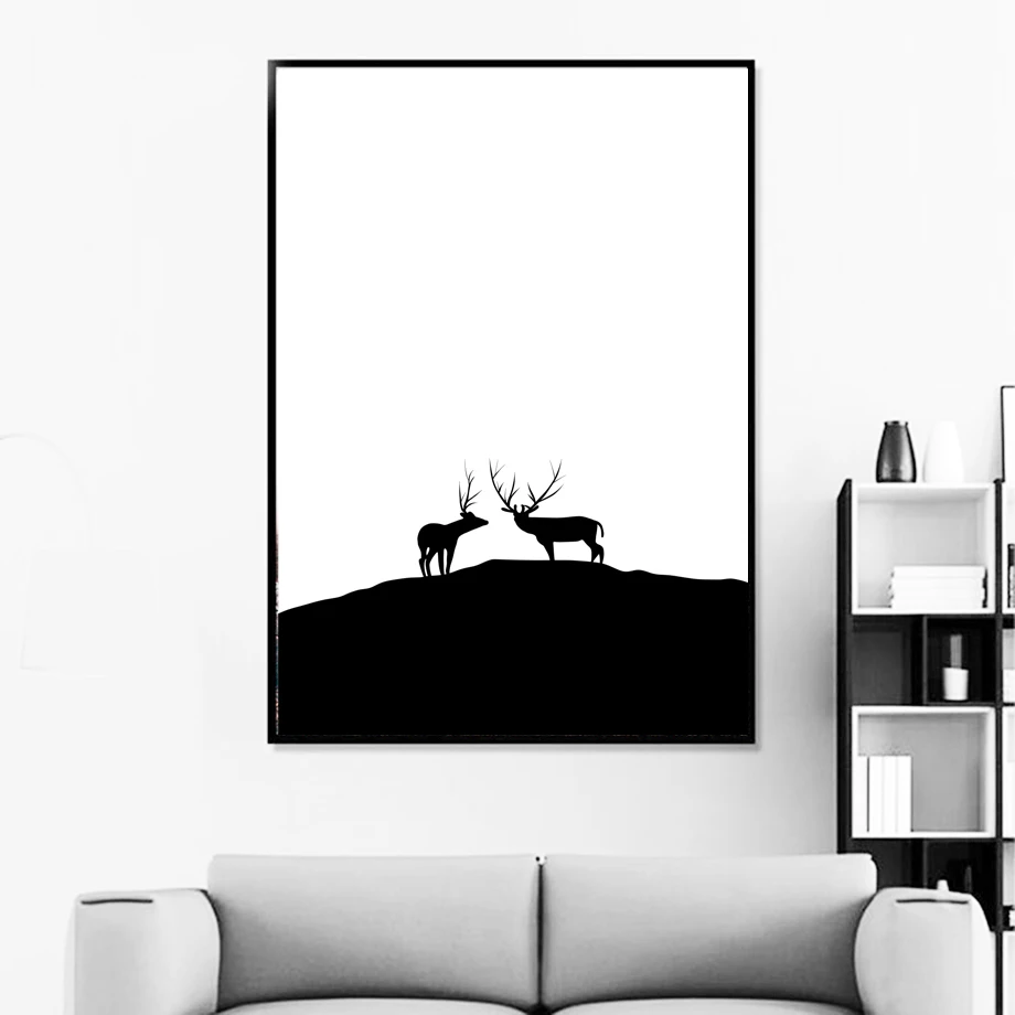 .Gallery of Abstract Simple Black White Deer Nordic Posters And Prints Wall Art Canvas Painting Animal Wall Pictures For Living Room Decor