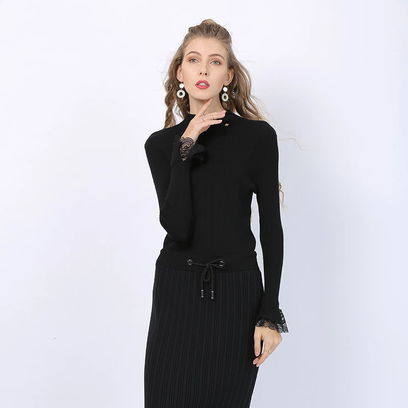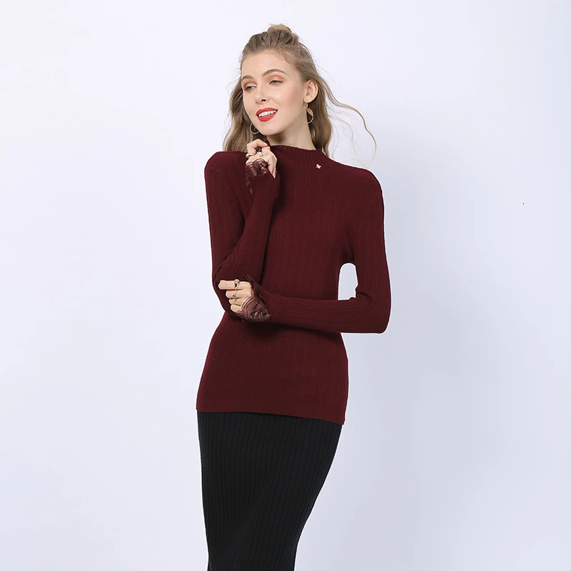 .Gallery for Autumn Winter Women Bottoming Sweater Half High Collar Long Sleeve Ladies Casual Pullovers Lace Solid Female Jumper 2020 Swetry