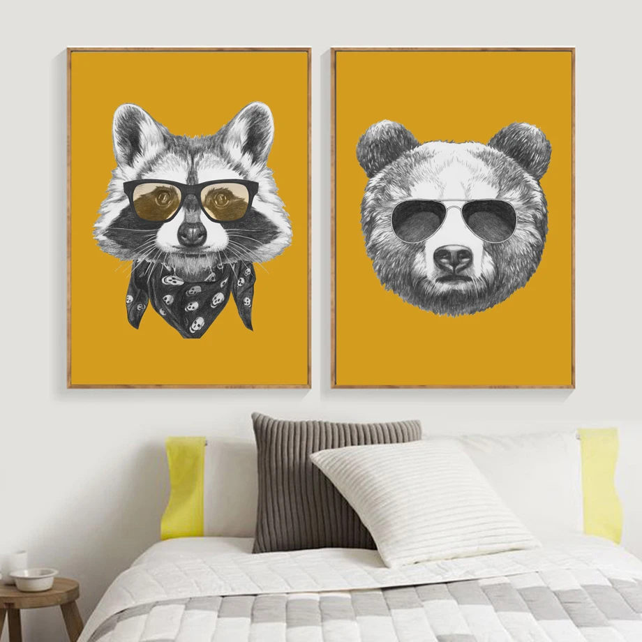 Cheap Bear Panda Raccoon Nordic Poster And Prints Wall Art Canvas Painting Wall Picture For Kids Bedroom Baby Boy Girl Room Home Decor Free Shipping