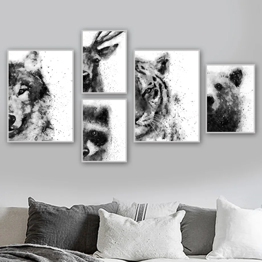 Cheap Black White Tiger Wolf Bear Deer Wall Art Canvas Painting Nordic Poster And Print Animal Wall Pictures For Living Room Decor Free Shipping