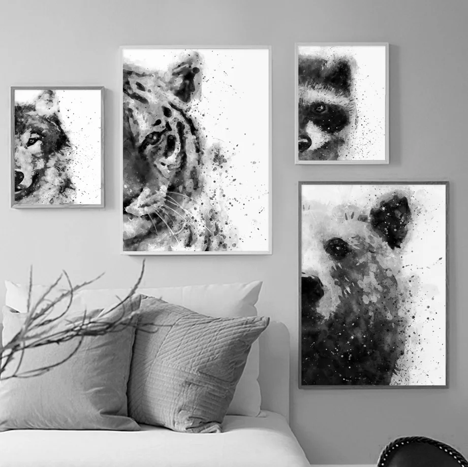 Addition Information of Black White Tiger Wolf Bear Deer Wall Art Canvas Painting Nordic Poster And Print Animal Wall Pictures For Living Room Decor