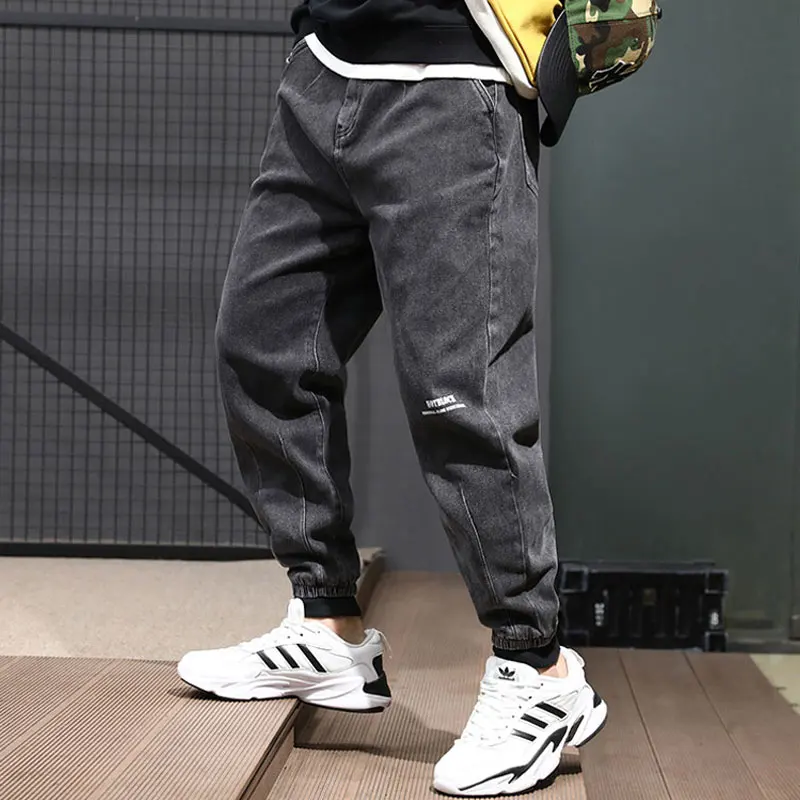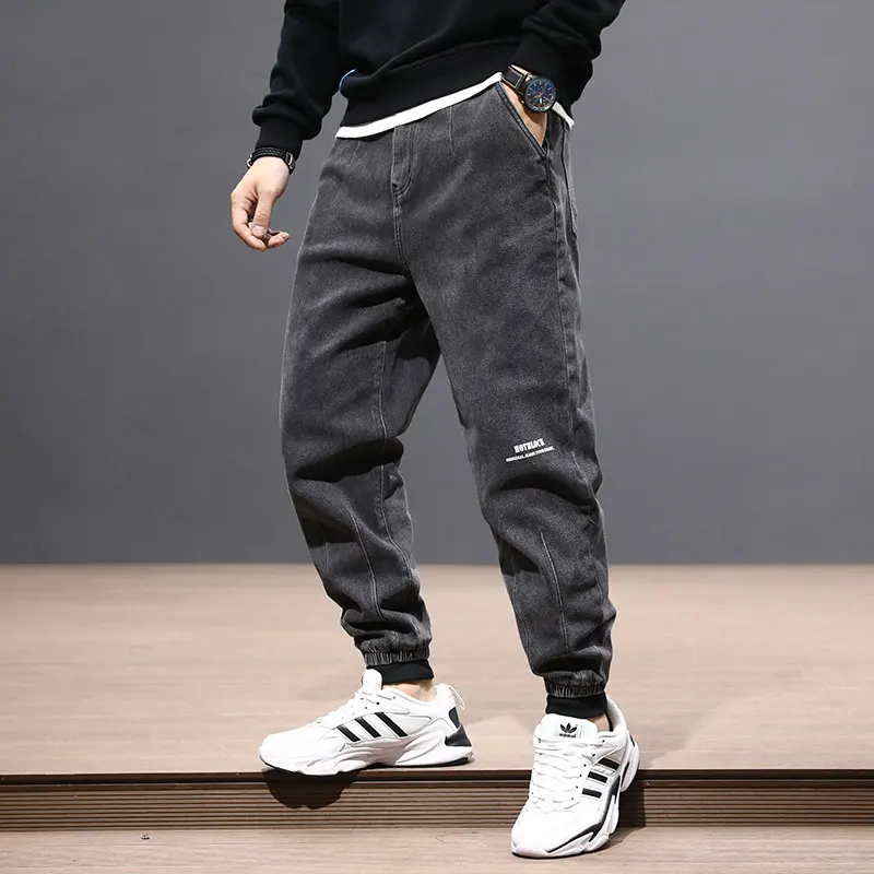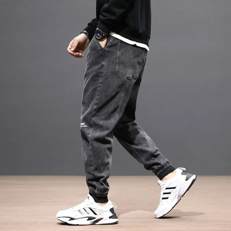Fashion Streetwear Men Jeans Loose Fit Black Gray Slack Bottom Casual Harem Pants Red Stripe Designer Hip Hop Joggers Pants Men