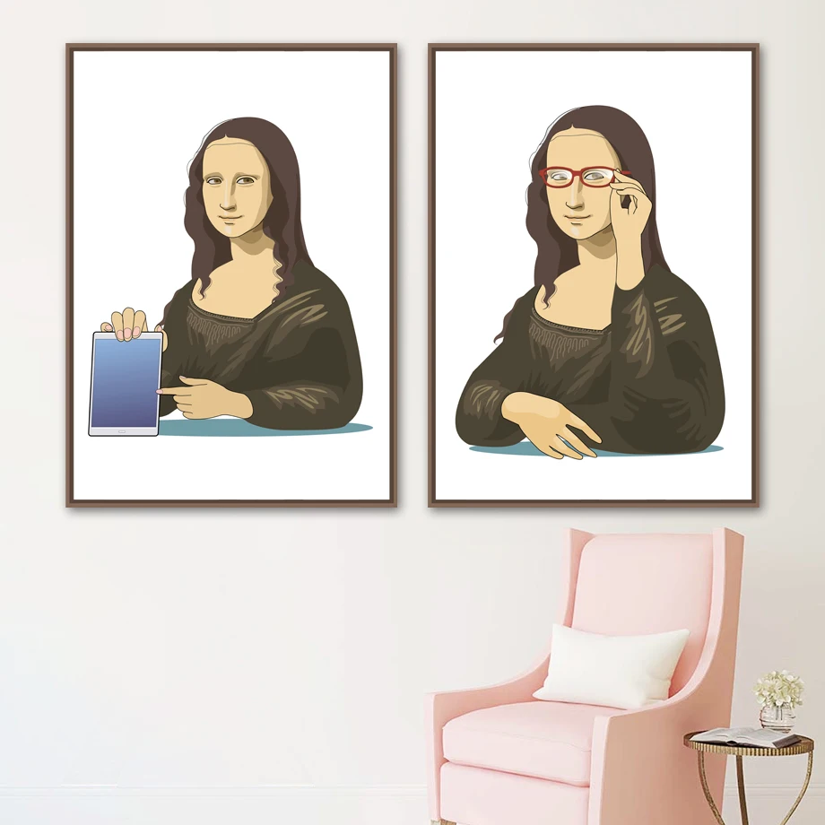 .Pictures of Funny Mona Lisa Mobile Phone Nordic Posters And Prints Wall Art Canvas Painting Wall Pictures For Living Room Bedroom Home Decor