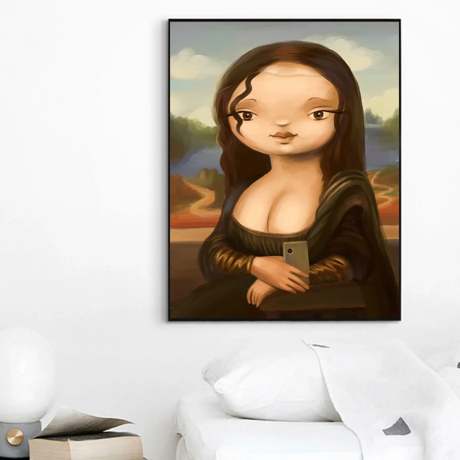 Best Chance for Funny Mona Lisa Mobile Phone Nordic Posters And Prints Wall Art Canvas Painting Wall Pictures For Living Room Bedroom Home Decor