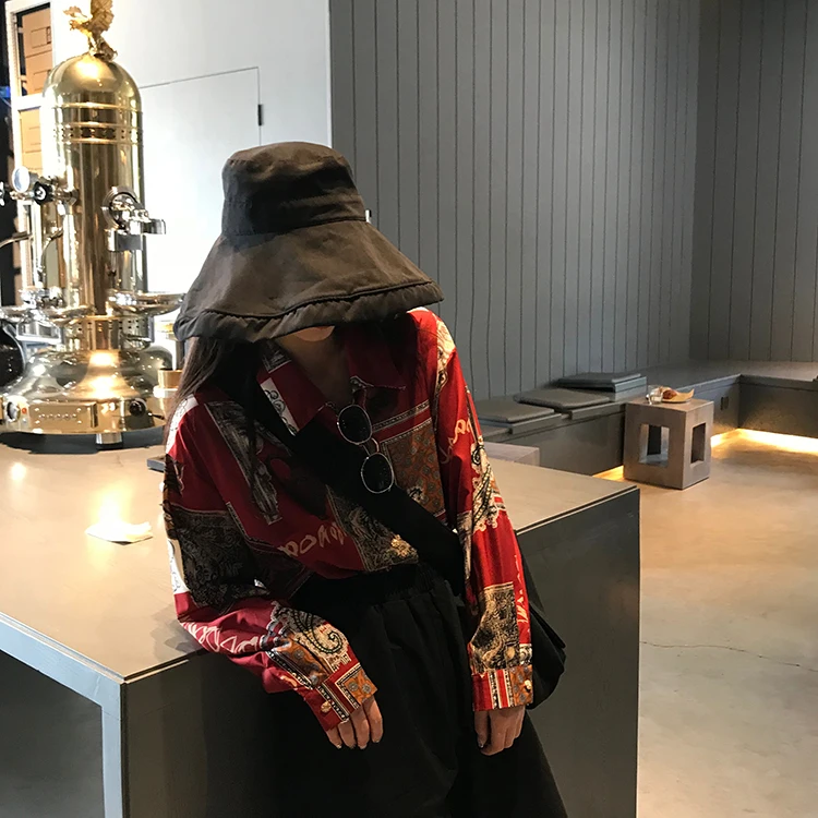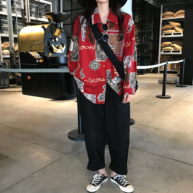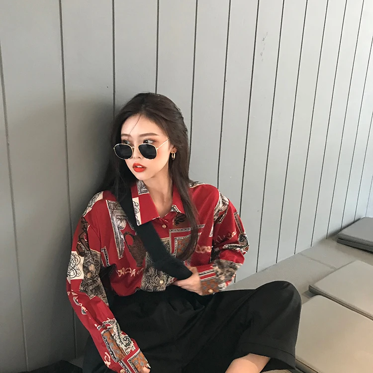 Addition Information of Korean Style 2020 Spring New Vintage Graffiti Print Turn-Down Collar Harajuku Long Sleeved Shirt Women Single Blouse Shirt