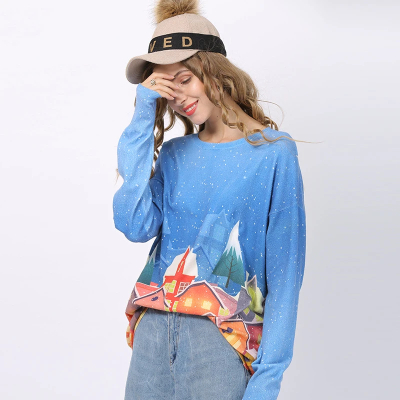 Offer Description of New Autumn Winter Women Knitted Sweater O Neck Full Sleeve Ladies Casual Pullovers Printed Female Jumper 2020 Pull De Noel Femme