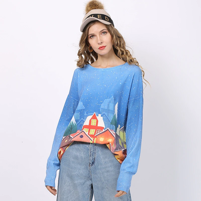 Related Product for [KEYWORD] and New Autumn Winter Women Knitted Sweater O Neck Full Sleeve Ladies Casual Pullovers Printed Female Jumper 2020 Pull De Noel FemmeLovely Cartoon Printed Sweater Women Casual Loose Knitted Pullovers Autumn Winter Ladies O Neck Bat Sleeve Jumpers Pull Femme