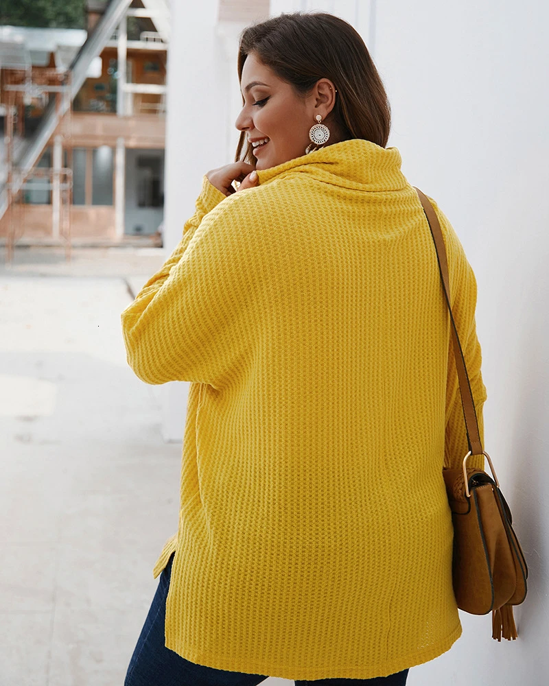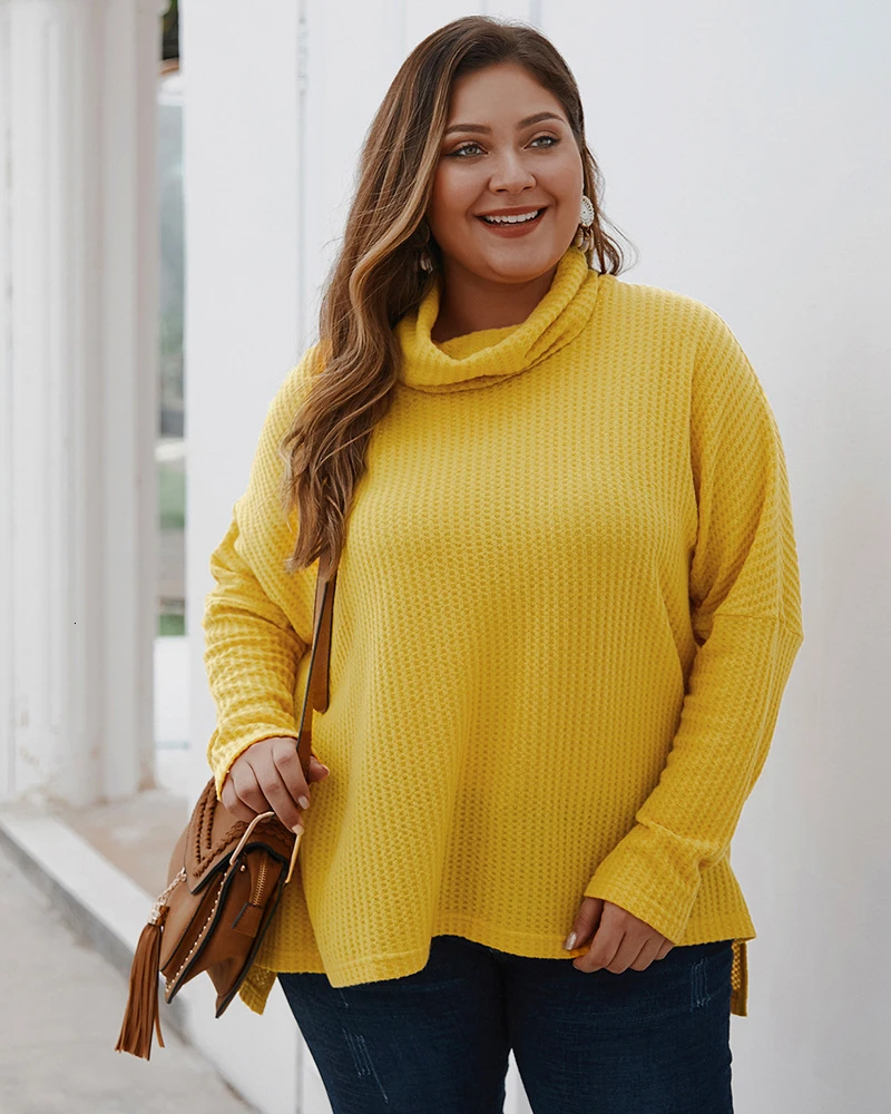.Images of Plus Size Fashion High Collar Casual Baggy Pullover Women Plain Color Simple Sweater Autumn Winter Clothes New 2020 Dames Truien