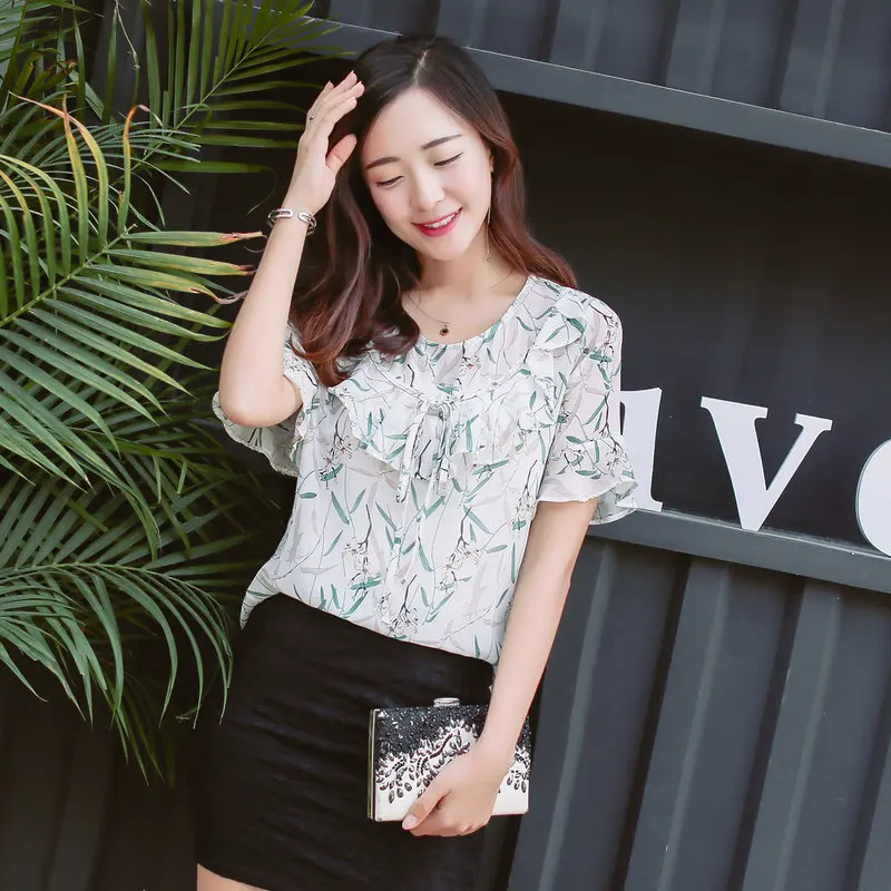 Buy Romantic Women Summer Chiffon Blouses Yellow Red Green Flower Printing Round Collar Short Sleeve Falbala Design Crepe Top Woman Right Here and Right Now or before 2098-12-31 and You will save US $16.88 or 45%, Because before price is changed afer 2098-12-31 you will just pay for 20.62, not in Reguler Price at 37.50. Yap! This is I mean you will Save 45% / US $16.88