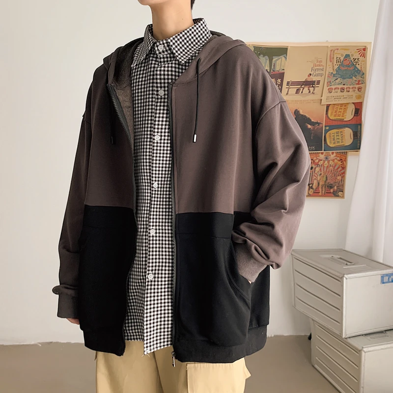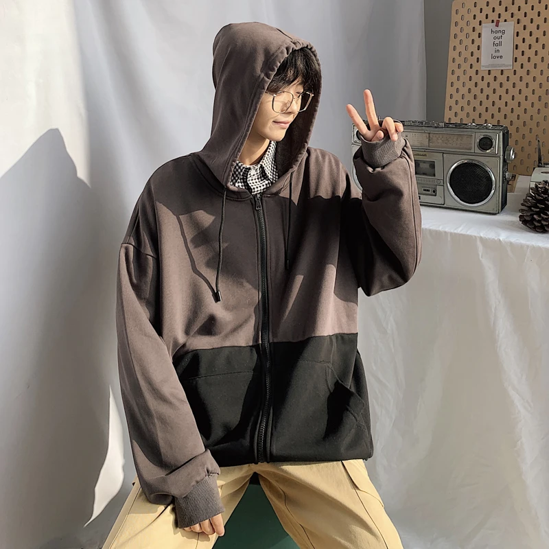 .Pictures of Spring Zipper Hoodies Men's Fashion Hit Color Casual Hooded Sweatshirt Men Streetwear Wild Loose Hip Hop Hoodie Mens M-5XL