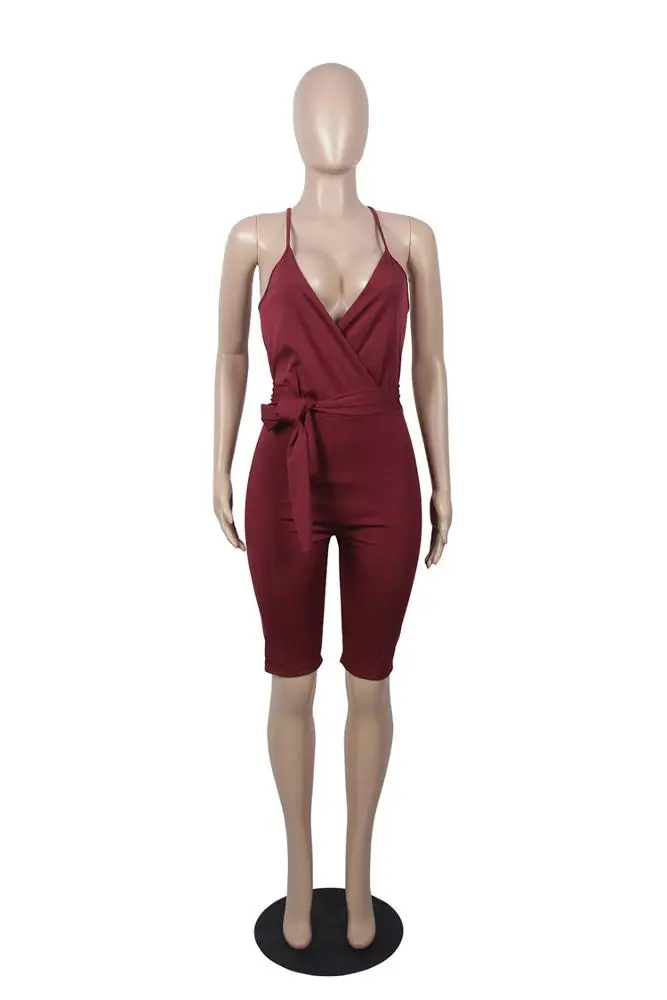 Good Offer for Women Jumpsuits Solid Color Spaghetti Strap Bandage V-Neck Knee Length Rompers Sexy Casual Club Fashion Jumpsuit Ladies Playsuit