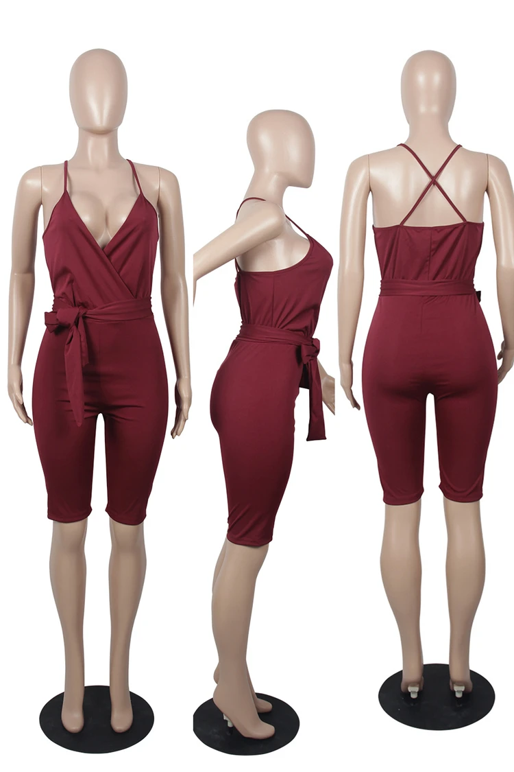 Addition Information of Women Jumpsuits Solid Color Spaghetti Strap Bandage V-Neck Knee Length Rompers Sexy Casual Club Fashion Jumpsuit Ladies Playsuit