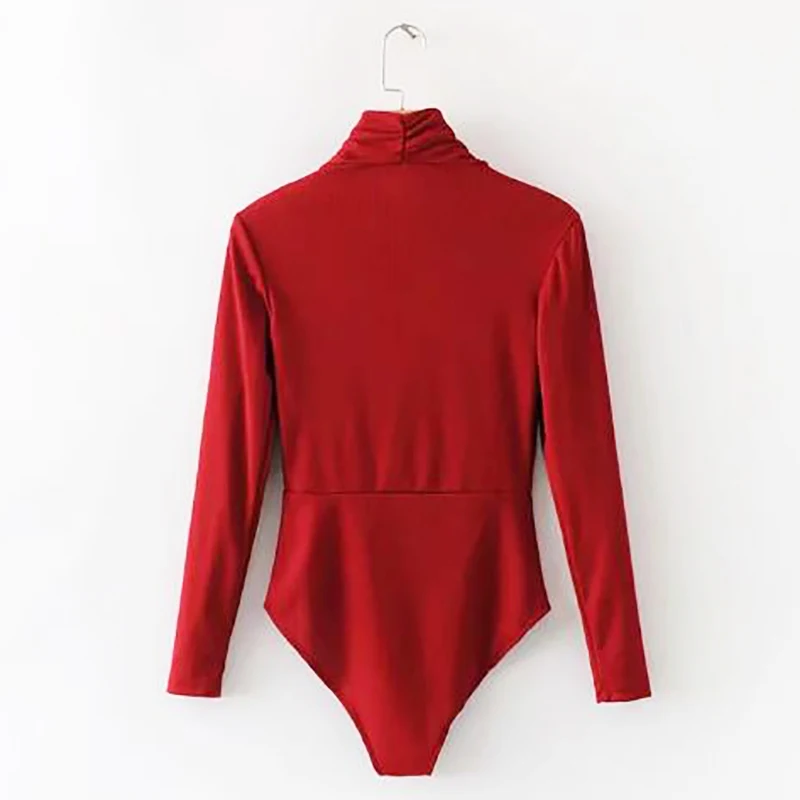 Price Description of Women Sexy V-Neck Long Sleeve Red Bodysuit 2020 Summer Casual Skinny Playsuits