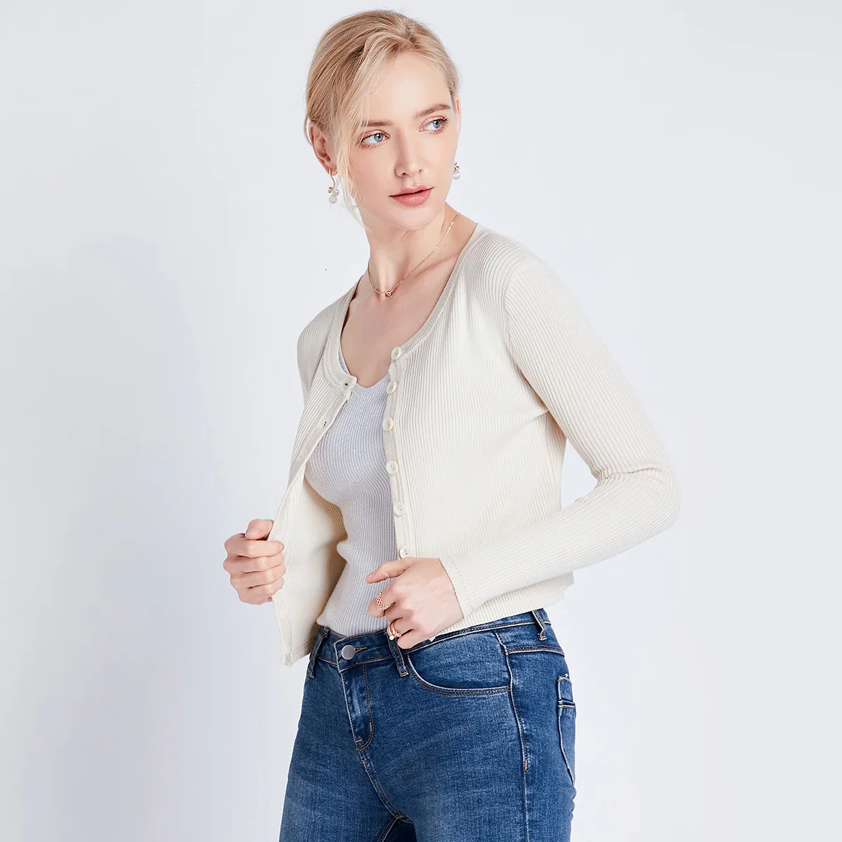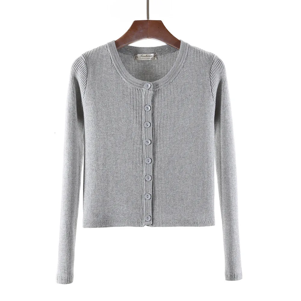 Best Autumn Casual O Neck Single-breasted Short Knitted Women Cardigan Ladies Korean Style Plain Color Sweater Outwear Robe Femme Free Shipping