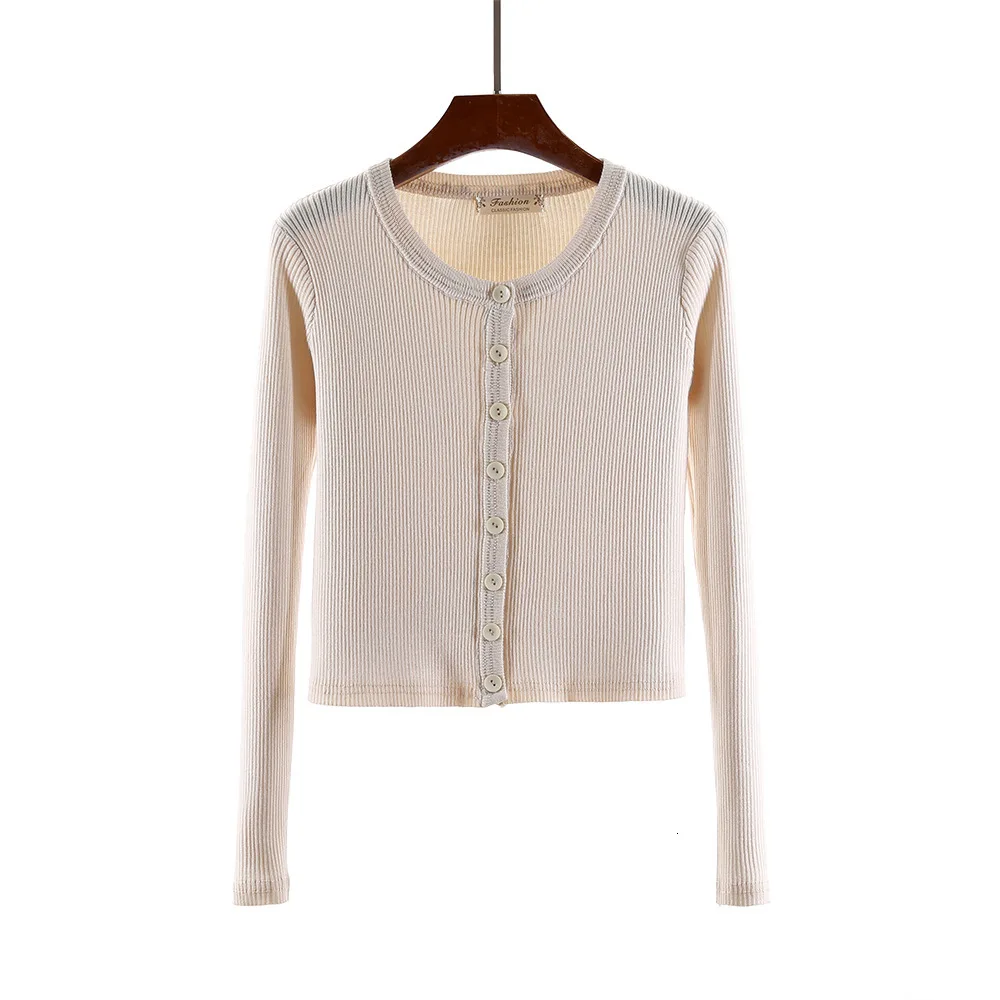 Good Chance for Autumn Casual O Neck Single-breasted Short Knitted Women Cardigan Ladies Korean Style Plain Color Sweater Outwear Robe Femme