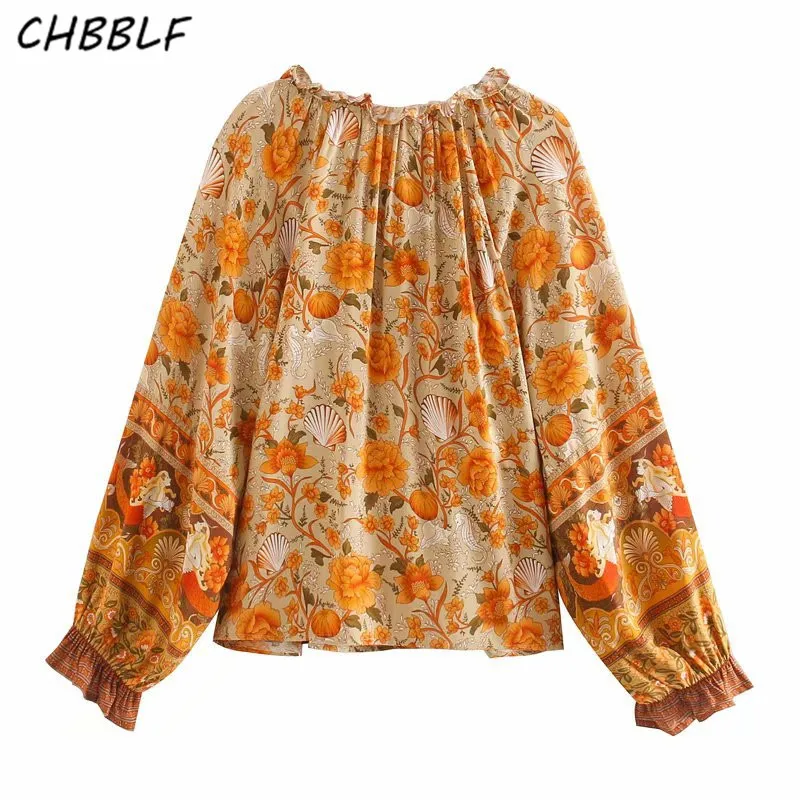Addition Information of CHBBLF women blouse long sleeve ruffled collar print shirts female casual summer chic tops SDT9339