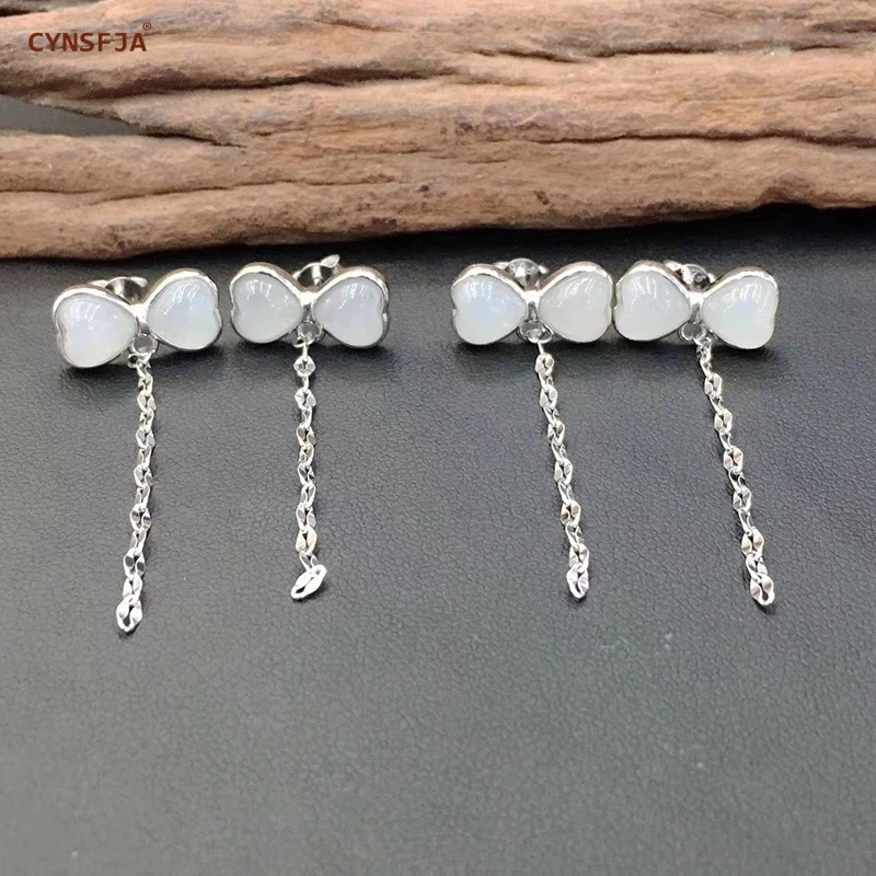 Special Chance of CYNSFJA Real Certified Natural Hetian Jade 925 Sterling Silver Fine Jewelry Charm Classical Jade Earring High Quality Best Gifts