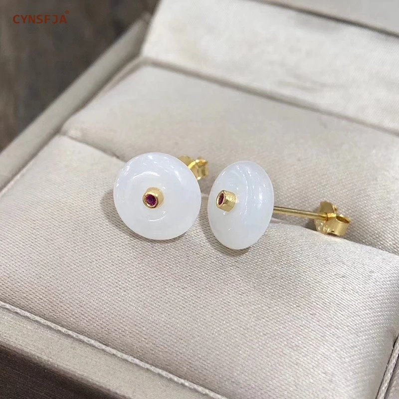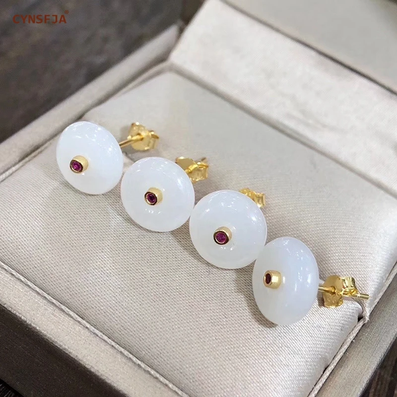 Best CYNSFJA Real Certified Natural Hetian Jade 925 Sterling Silver Fine Jewelry Peace Buckle Jade Earrings High Quality Best Gifts Free Shipping