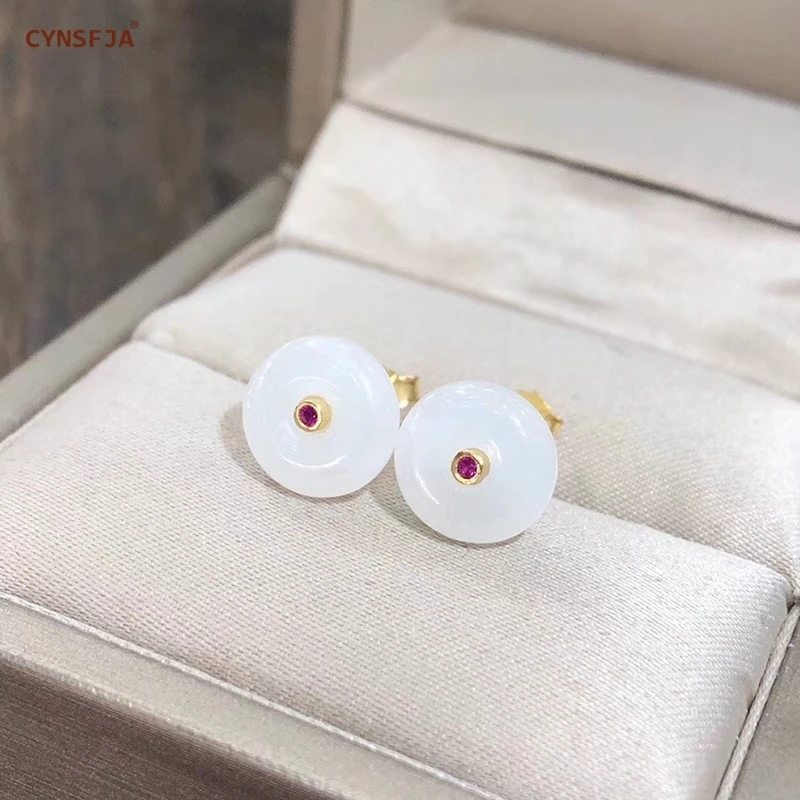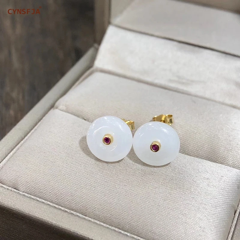 If You will buy for Fine Jewelry, then CYNSFJA Real Certified Natural Hetian Jade 925 Sterling Silver Fine Jewelry Peace Buckle Jade Earrings High Quality Best Gifts may be make you like