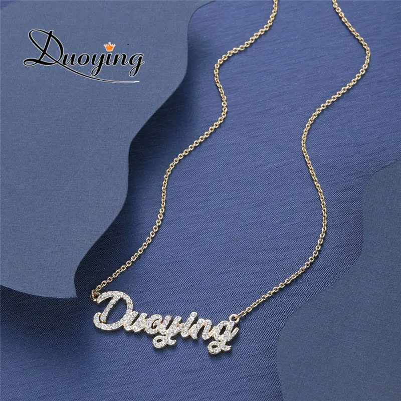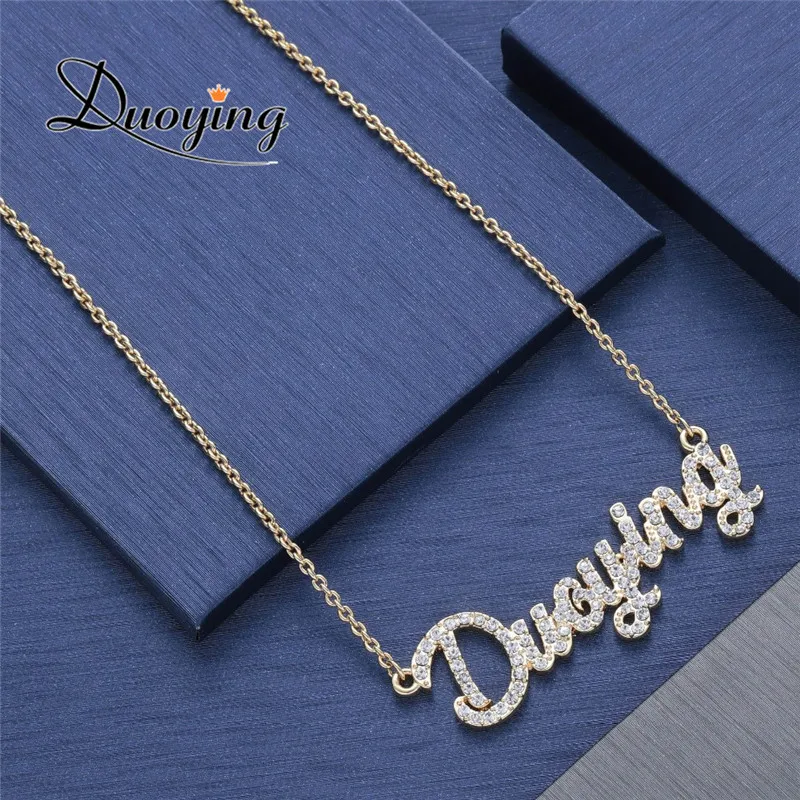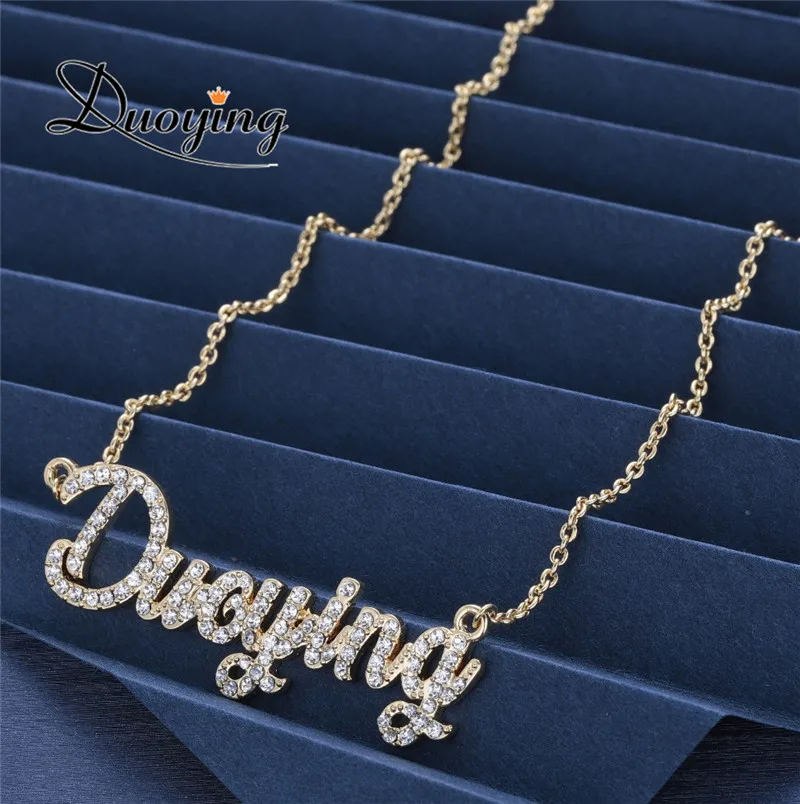 Best Duoying Custom Jewelry Crystal Plating Gold Color Sparkling Cut Carrie Style Name Necklaces Personalized Nameplate Necklace Free Shipping