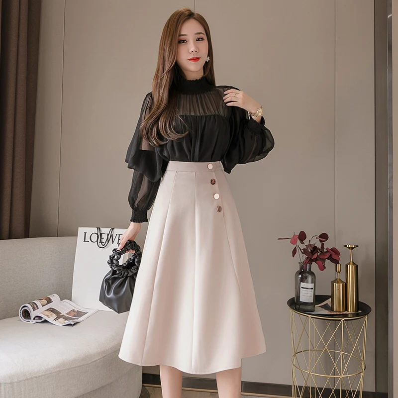 Best Korean Fashion Women Skirt Woman High Waist Solid Skirt Plus Size Elegant Women Skirts Plus Size Faldas Mujer Moda Skirts Womens Free Shipping