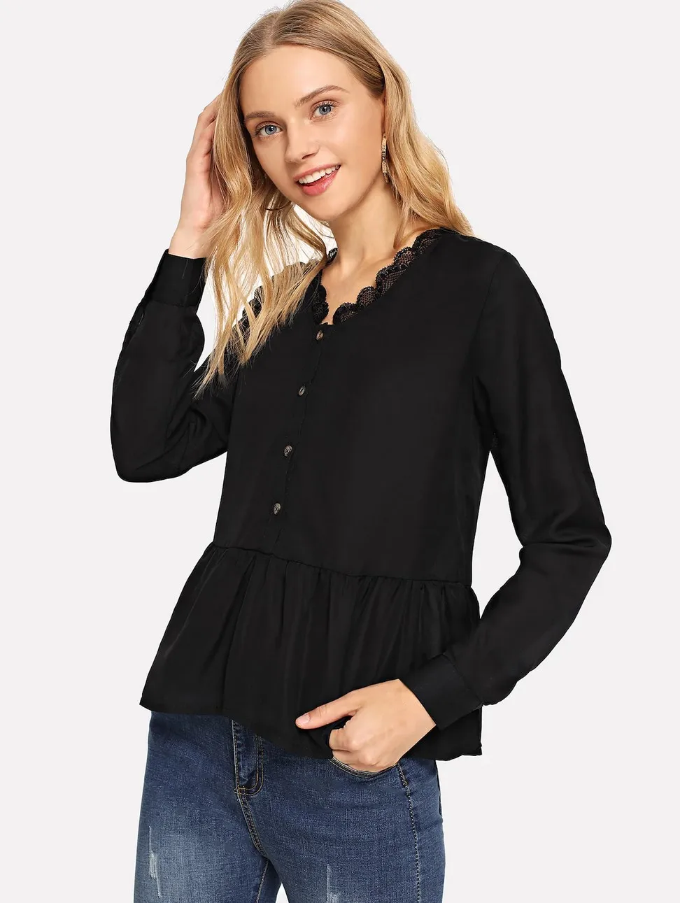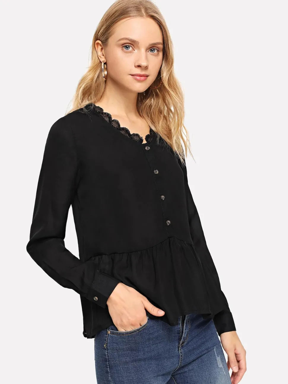 If You search information for Blouses , then Linglewei New Spring and Summer Women's Shirt lesbian V-neck Breasted Long sleeves Lotus leaf edge shirt may be make you love