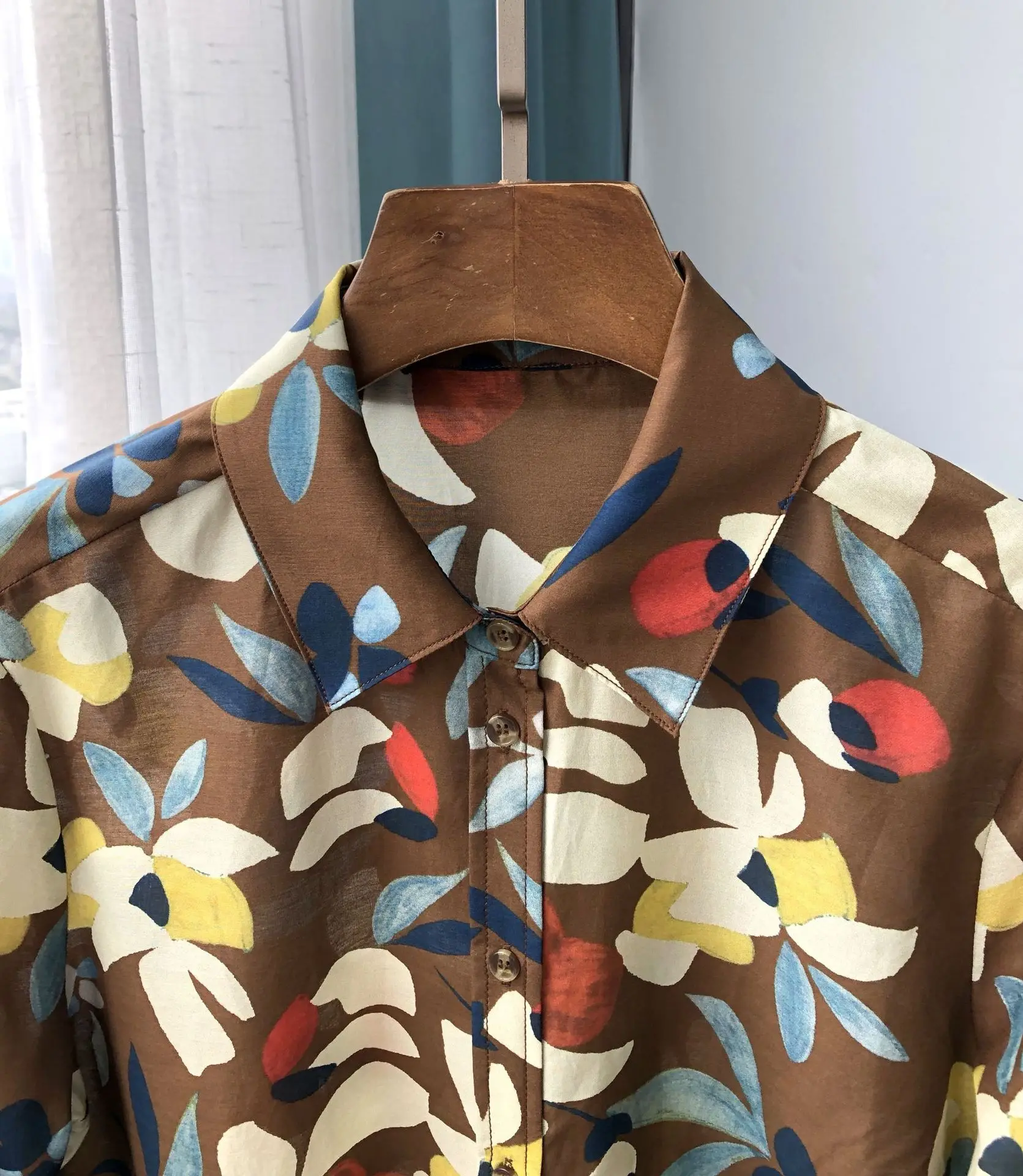 Addition Information of Women Shirt Silk Cotton Shirt Southern Vintage Light Silk Cotton Spinning Simple Straight Blouses