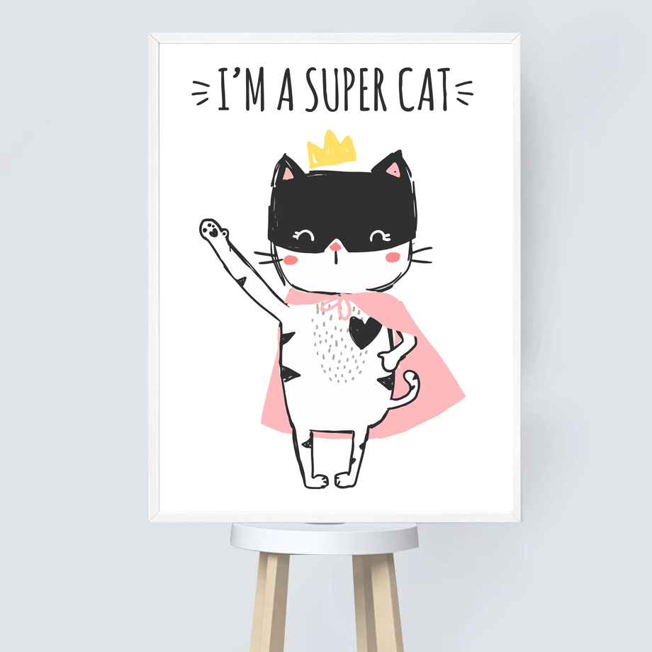 .Pictures for Bunny Quote Superhero Cat Wall Art Canvas Painting Nordic Poster And Print Animal Wall Picture Baby Girl Room Nursery Home Decor
