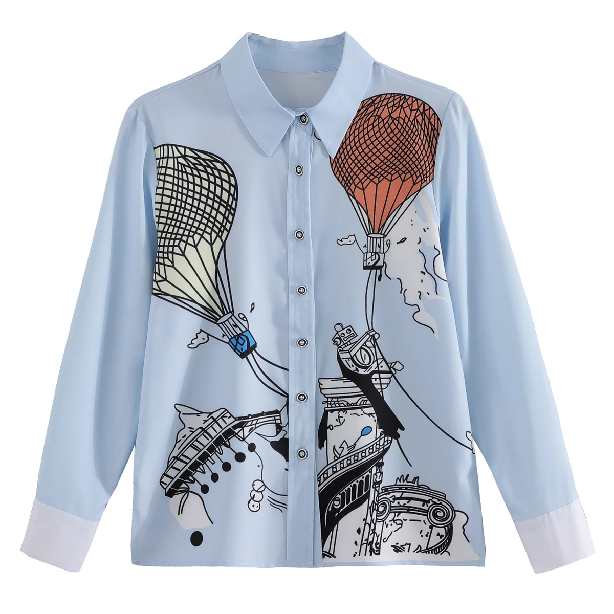 Korean Cotton Women Shirts Elegant Office Lady V Neck Print Shirt Plus Size Womens Tops and Blouses Women Floral Blouse Shirts