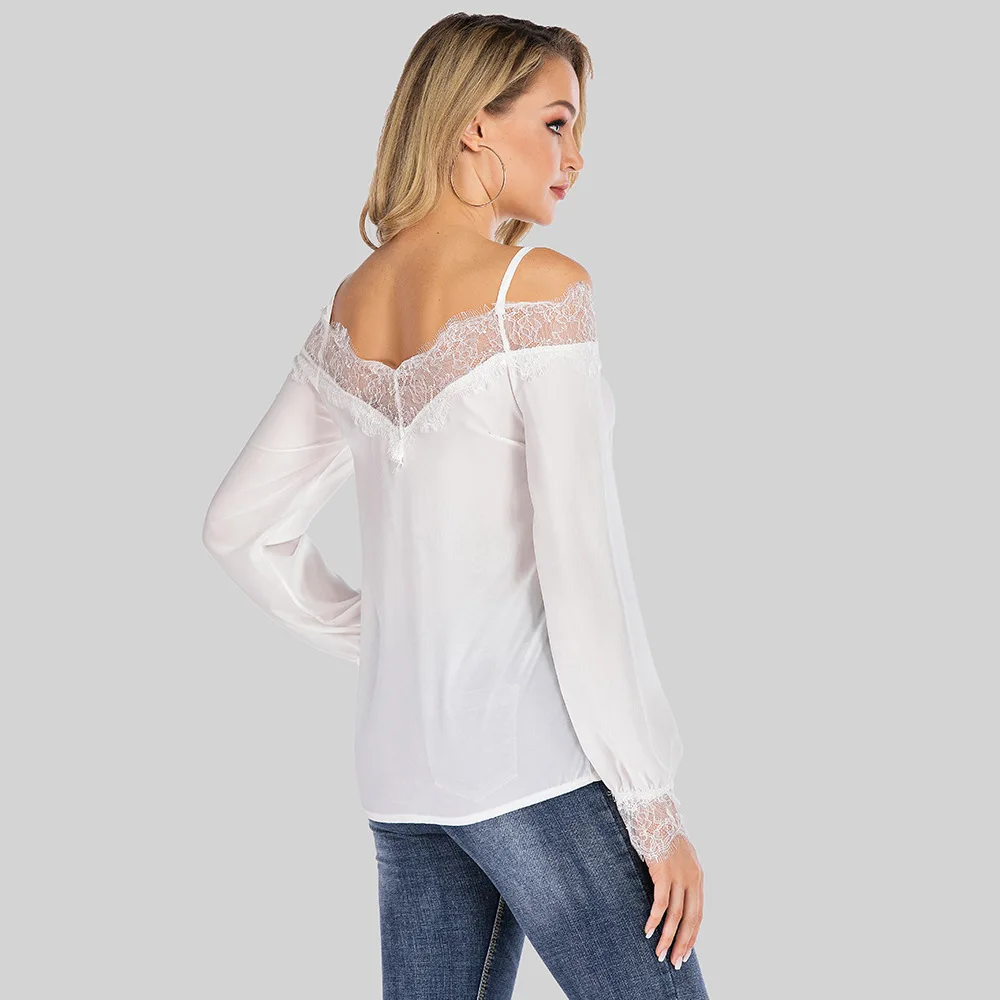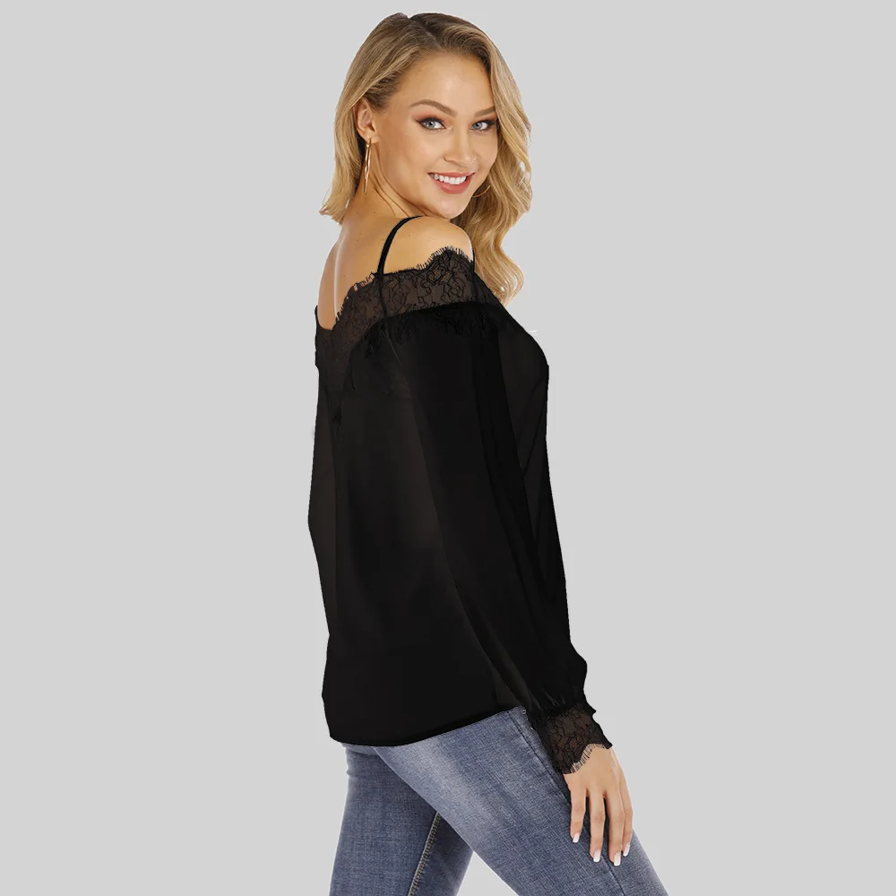 If You search information for Blouses , then Solid Color Lace Horizontal Neck Raglan Long Sleeve Young Small Top Shirt with Narrow Straps is possible make you like