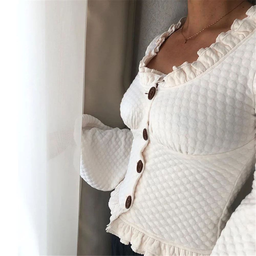 Shirts Blouses Women Shirts Summer Spring Long-sleeve Ruffled Slim Blouse Tops Elegant Ruffles Shirt