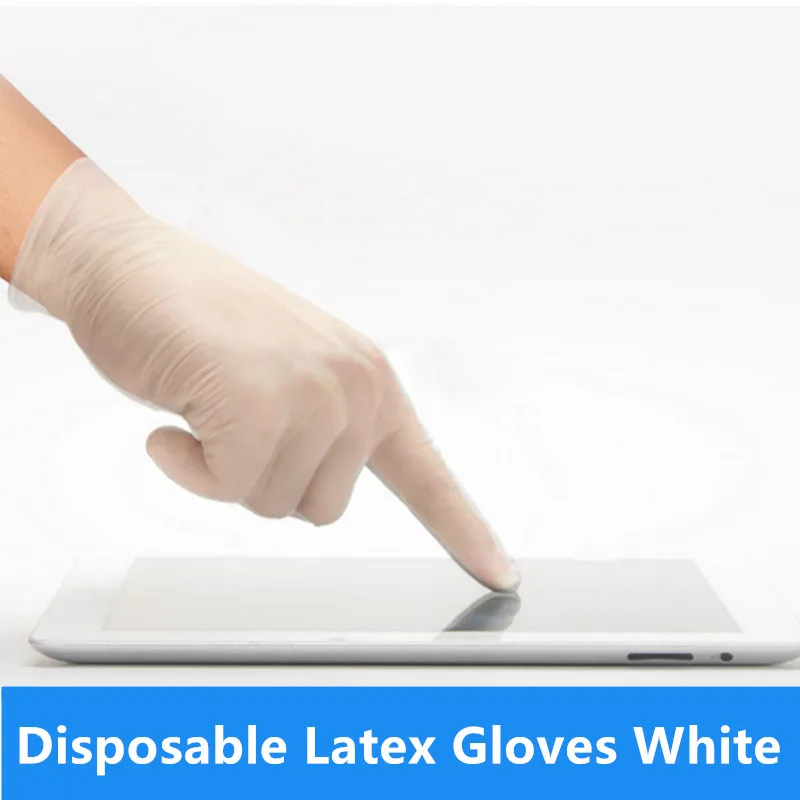 Best Offer for 100pcs Disposable Latex Gloves White Non-Slip Acid and Alkali Laboratory Rubber Latex Gloves Household Cleaning Products NEW
