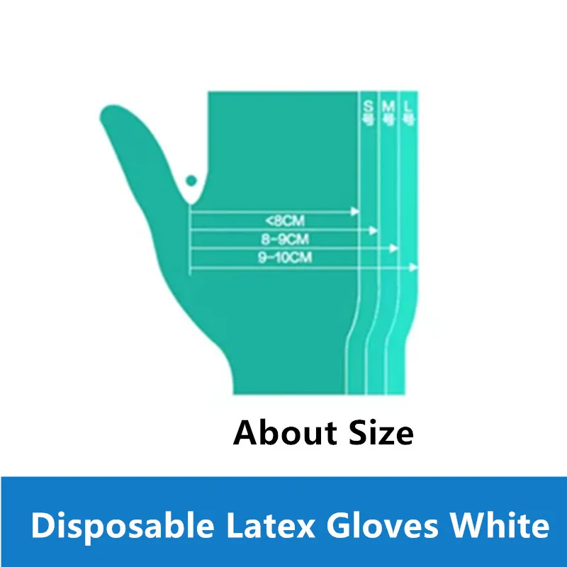 Addition Information of 100pcs Disposable Latex Gloves White Non-Slip Acid and Alkali Laboratory Rubber Latex Gloves Household Cleaning Products NEW