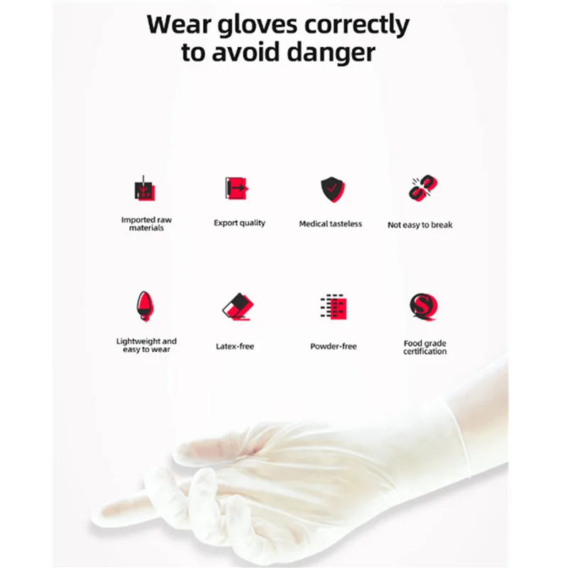 Chance Description for 100pcs Disposable Latex Gloves White Non-Slip Acid and Alkali Laboratory Rubber Latex Gloves Household Cleaning Products NEW