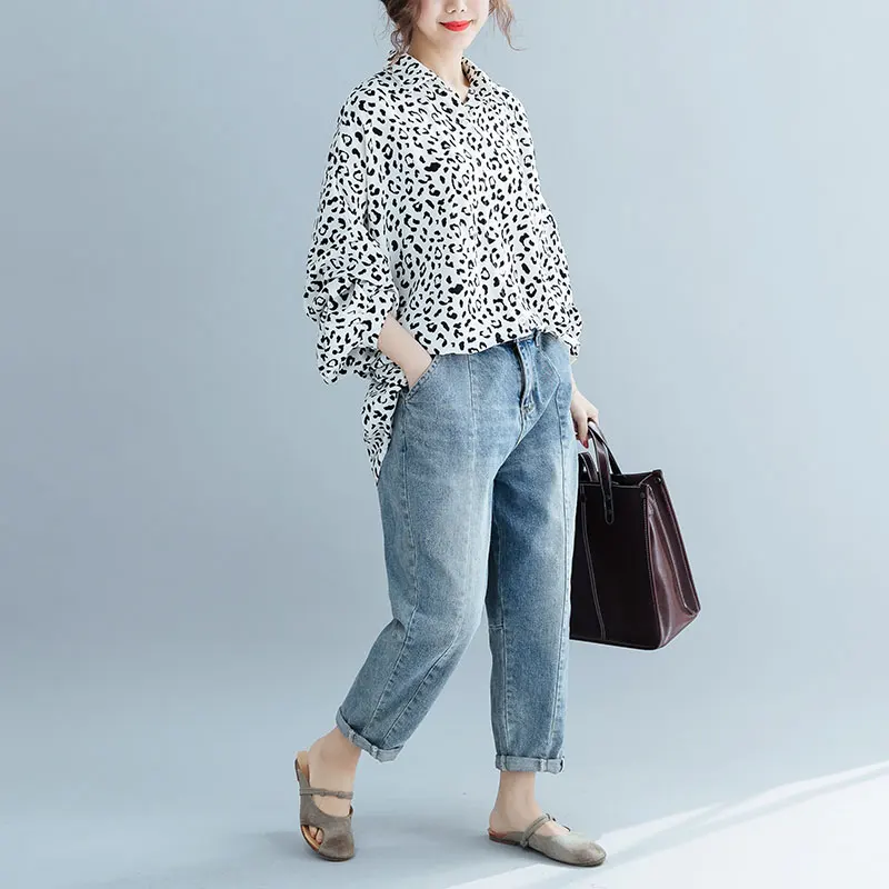 Chance Description for 2020 Spring Summer Ladies Shirts Korean Casual Womens Tops And Blouses Plus Size Women Sexy Leopard Printed Shirt Cotton Blouse