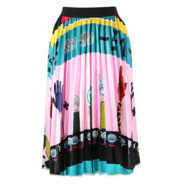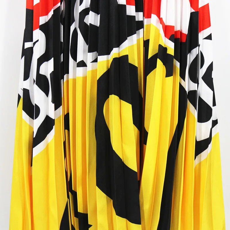 Addition Information of 2020 Summer Newest Letter Print Long Skirt Women Irregular Stitching Color Skirt Lady High Waist Elastic A-Line Skirt ZQY832