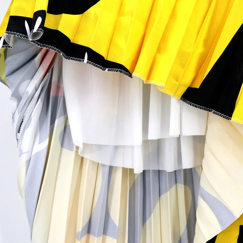 .Gallery of 2020 Summer Newest Letter Print Long Skirt Women Irregular Stitching Color Skirt Lady High Waist Elastic A-Line Skirt ZQY832