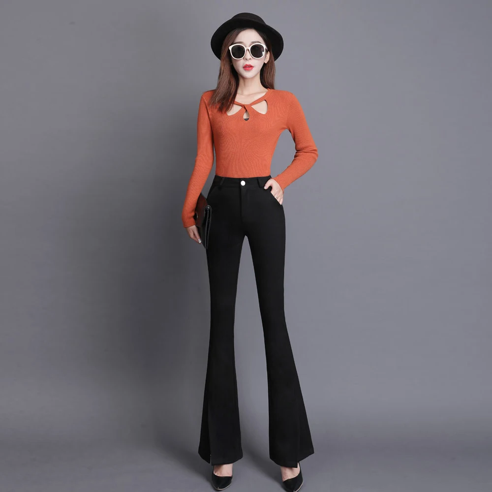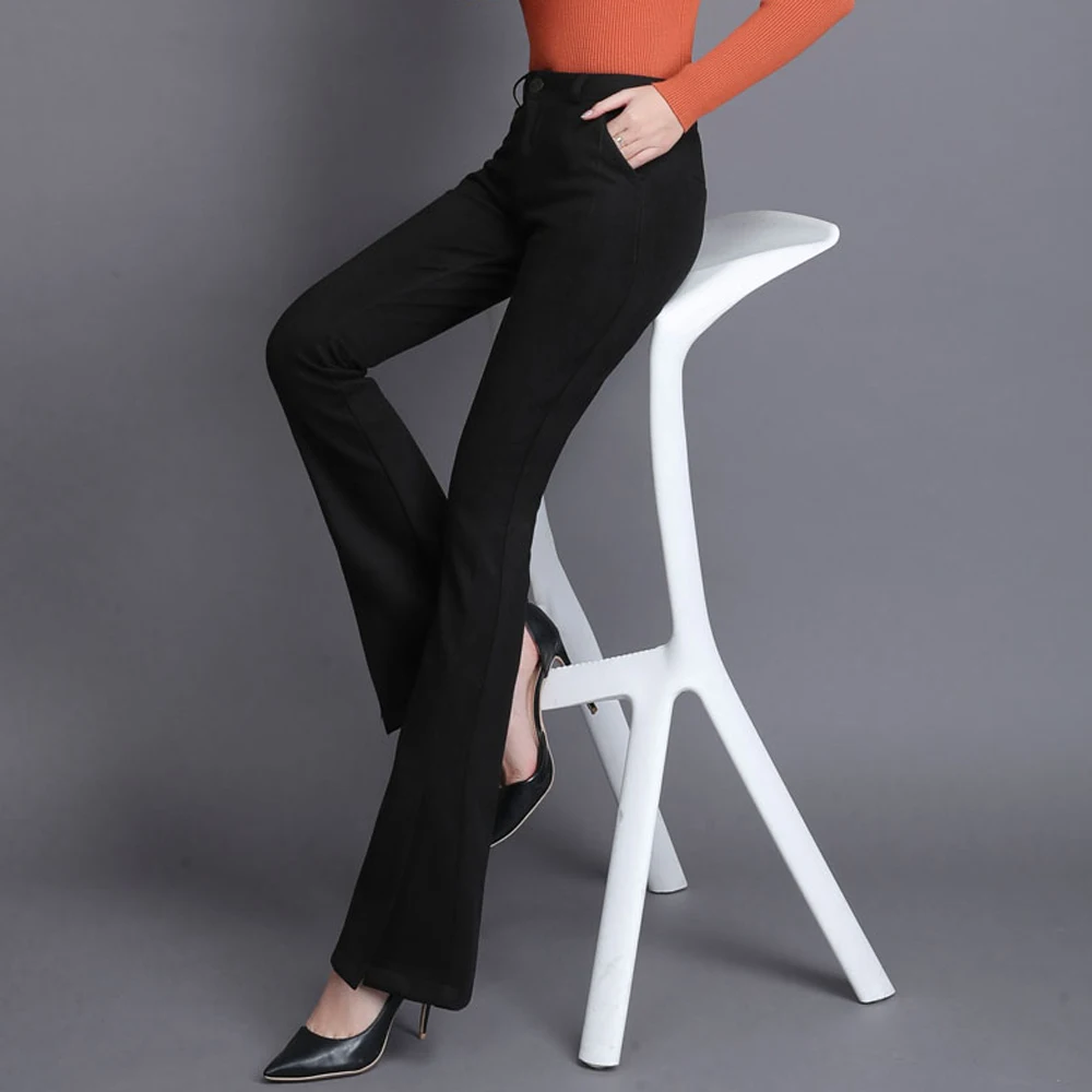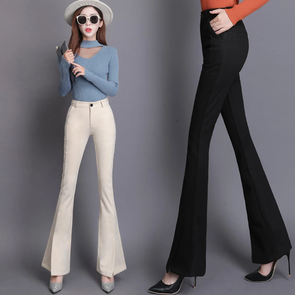 Cheap Price for ATDYSPM Vintage High Waist Flare Pants Women Hem Split Trousers Formal Office Suit Pants Elegant Ladies Causal Pants