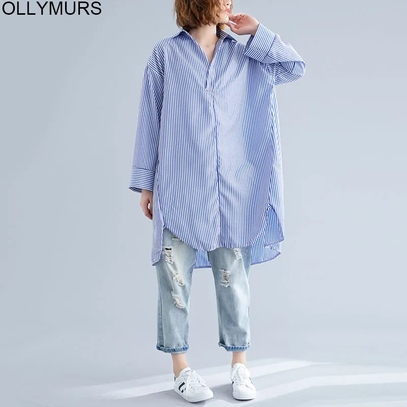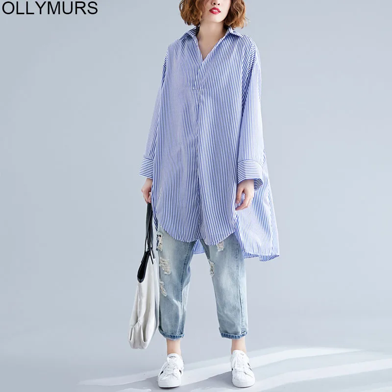 Limited Price for Autumn Winter 2019 Plus Size Striped Shirt Dress Women Blouse Vintage Loose Long Sleeve Cotton Long Shirts Blouses 4XL 5XL 6XL