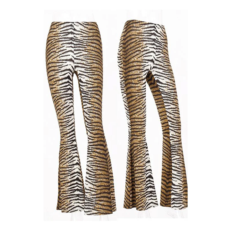 .Gallery of Cheap price elastic high waist leopard print flared trousers women pants jeans skirts