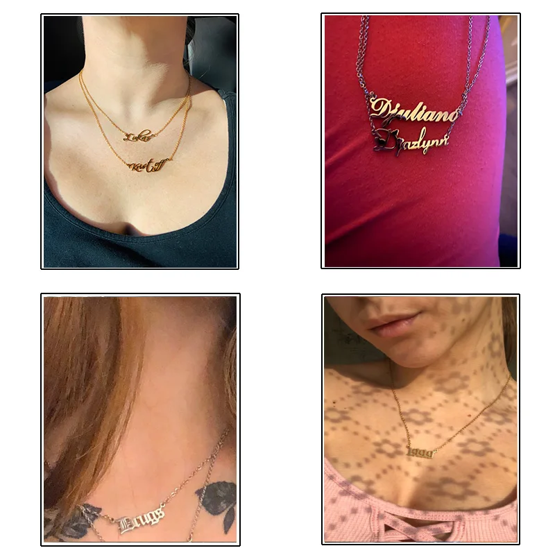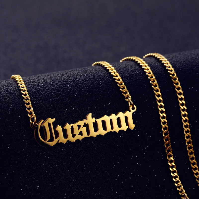 .Gallery of Custom Name Necklace Pendant Gold Personalized Custom Letter Cuban Chain Customized Nameplate Stainless Steel Necklaces