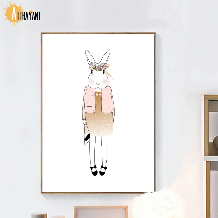 .Gallery for Fashion Rabbit Wall Art Canvas Painting Nordic Posters And Prints Animal Wall Pictures Kids Bedroom Baby Girl Room Home Decor