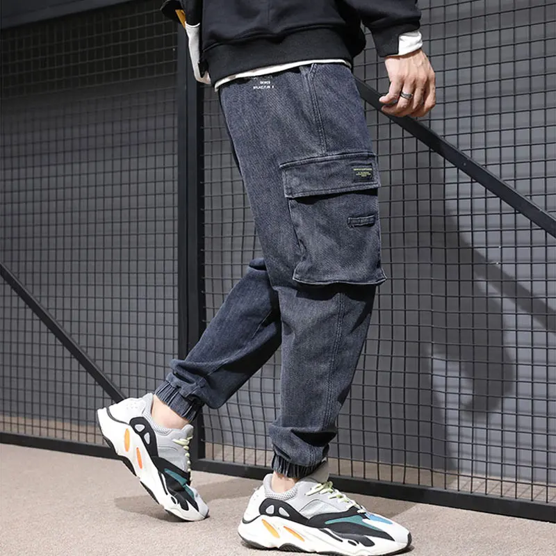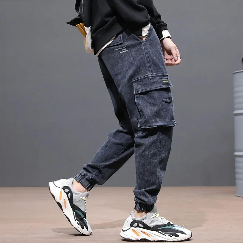 .Images of Fashion Streetwear Men Jeans Loose Fit Black Gray Color Big Pocket Denim Cargo Pants Vintage Designer Hip Hop Jeans Men Joggers