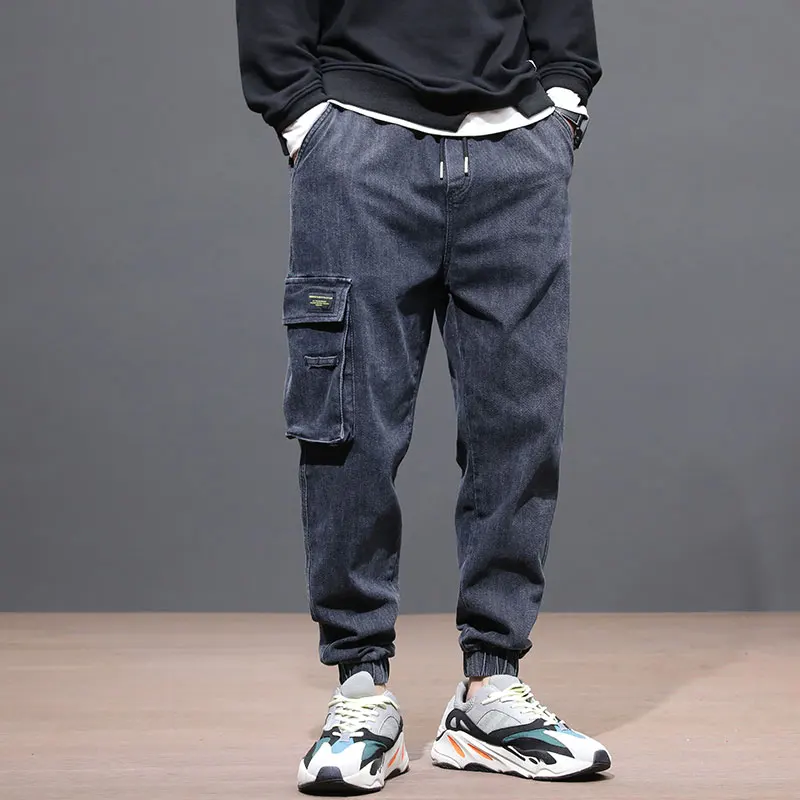 Japanese Vintage Fashion Men Jeans Loose Fit Slack Bottom Denim Cargo Pants Spliced Designer Hip Hop Jeans Men Joggers Pants